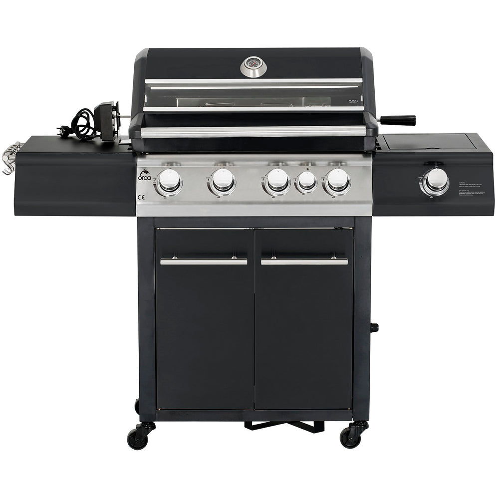 4 مواقد غاز رئيسية قوية: توفر قوة هائلة وتوزيعًا مثاليًا للحرارة عبر منطقة الشواء الواسعة.