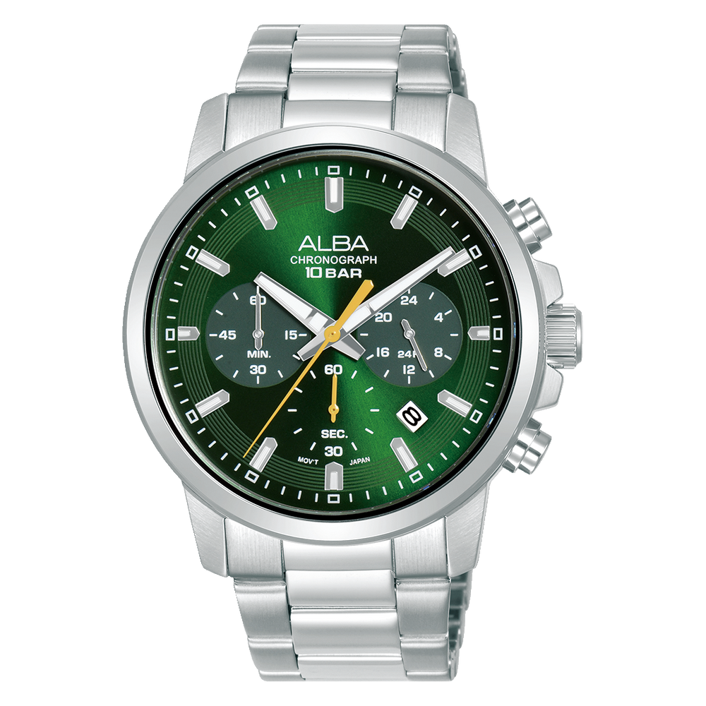 Functions: Hour, minute, second + chronograph + 12‑/24‑hour indication + split‑time + date display
