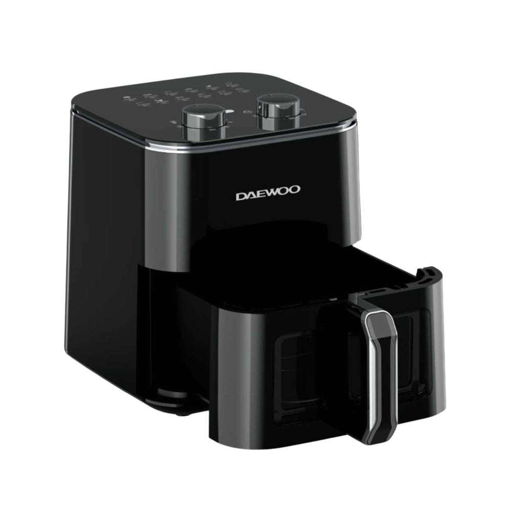 Compact and stylish design: Thanks to its convenient size, the fryer fits on any kitchen countertop without taking up much space, and it comes in a modern black color.